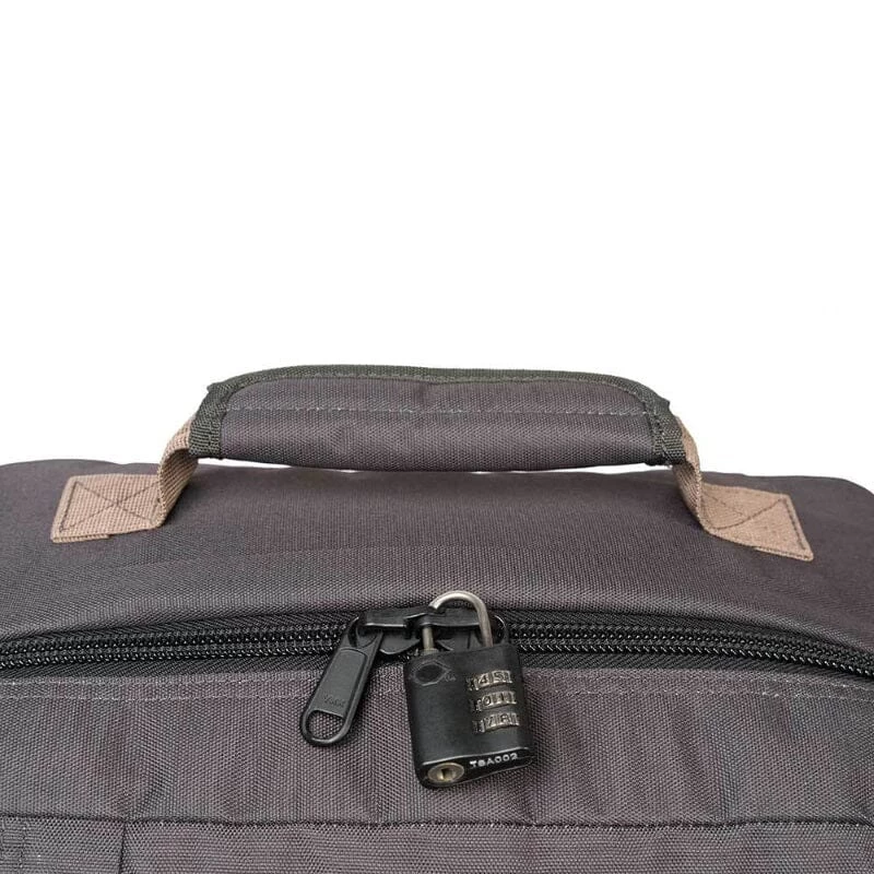 De Cabin Zero is gemaakt van stevig, waterafstotend polyester en kan zeker tegen een stootje. Het hoofdvak van de tas heeft dubbele “kissing zippers” en is daardoor heel gemakkelijk af te sluiten met een slotje. Het slotje zit niet inbegrepen bij de Cabin Zero maar kan wel los besteld worden.