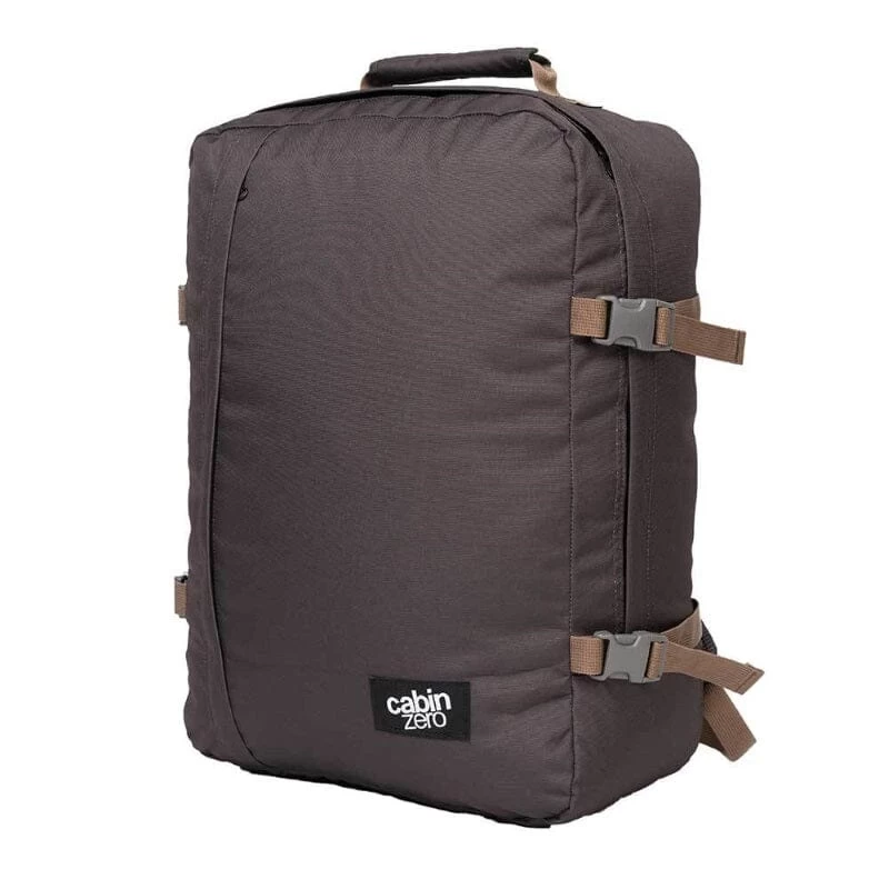 De Cabin Zero Ultralight Cabin bag Classic is een handbagage trolley, maar dan zonder de wielen en de trekslang. De tas is licht van gewicht (nog geen 800 gram) en is handig te dragen dankzij de verstelbare, gevoerde schouderbanden en de extra boven- en zij handgrepen.