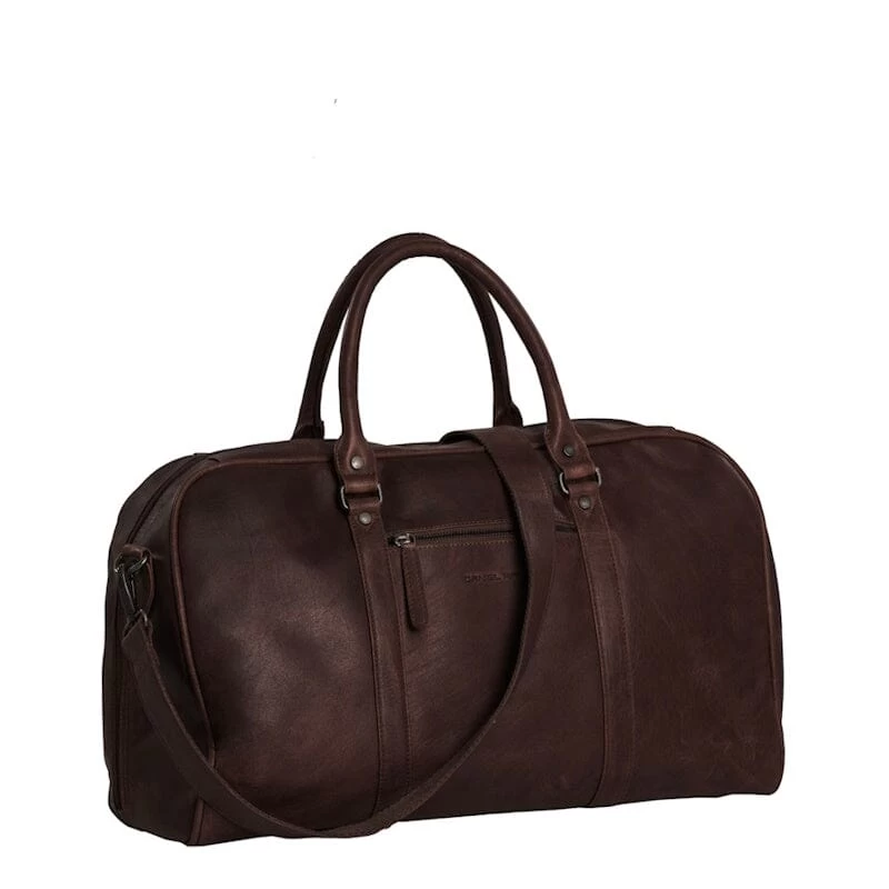 Stijlvol op reis of weekendje weg? Stijl & klasse komen samen in deze luxe leren weekendtas. Handig op te bergen of te stapelen in bijvoorbeeld de kofferbak. Een ruime tas met een U-vormige rits waardoor je makkelijk het hele vak open kunt leggen en je eenvoudig kunt in-en uitpakken. In het ruime hoofdvak bevinden zich twee steekvakken. Naast een extra ritsvak aan de voorzijde, is er ook een ritsvak aan de binnenzijde, handig voor het opbergen van je portemonnee of sleutels. Veder bevinden zich aan de binnenzijde een telefoonvak en een steekvak.Deze weekender/reistas heeft stevige leren handgrepen waardoor de tas aan de hand maar ook over de schouder gedragen kan worden. De afneembare en verstelbare schouderband zorgt ervoor dat de tas op gewenste lengte gedragen kan worden, ook crossbody. De binnenvoering heeft een luxe uitstraling door het mooie patroon.
