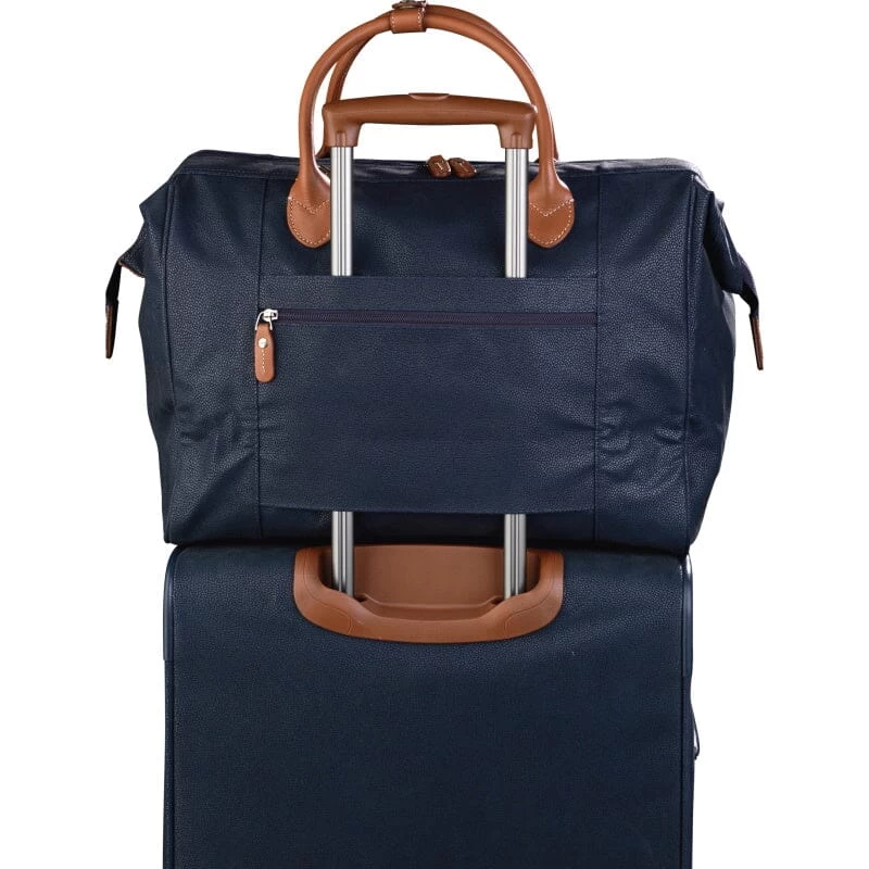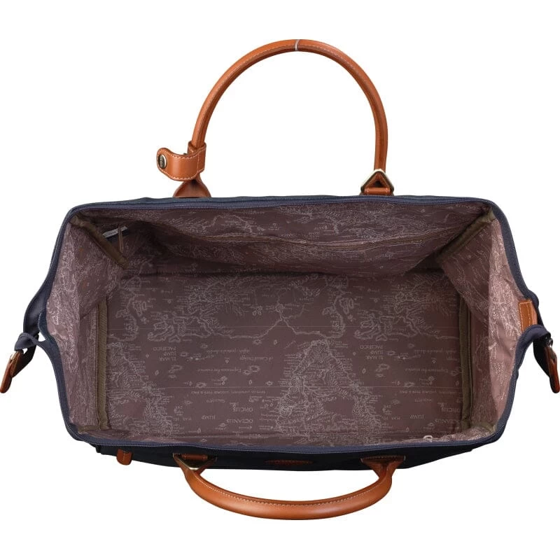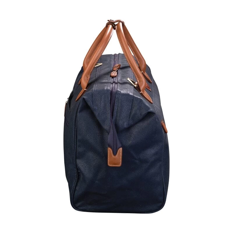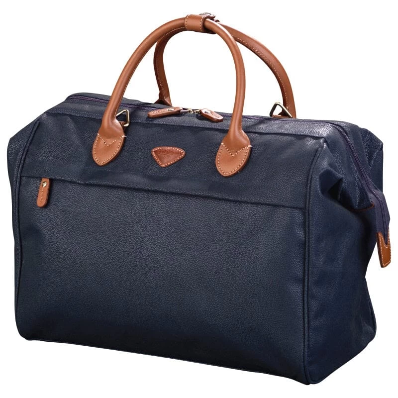 Door het gebruik van flockmateriaal afgewerkt met leer heeft deze weekend/reistas een unieke uitstraling en is het materiaal tevens waterafstotend. De tas is voorzien van twee beugels waardoor bij het openen de tas heel toegankelijk is. Daardoor is deze reistas erg geliefd onder de modebewuste en praktische reiziger die tijdens een vliegreis deze tas mee kan nemen als handbagage.