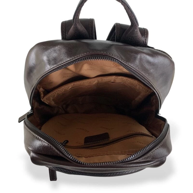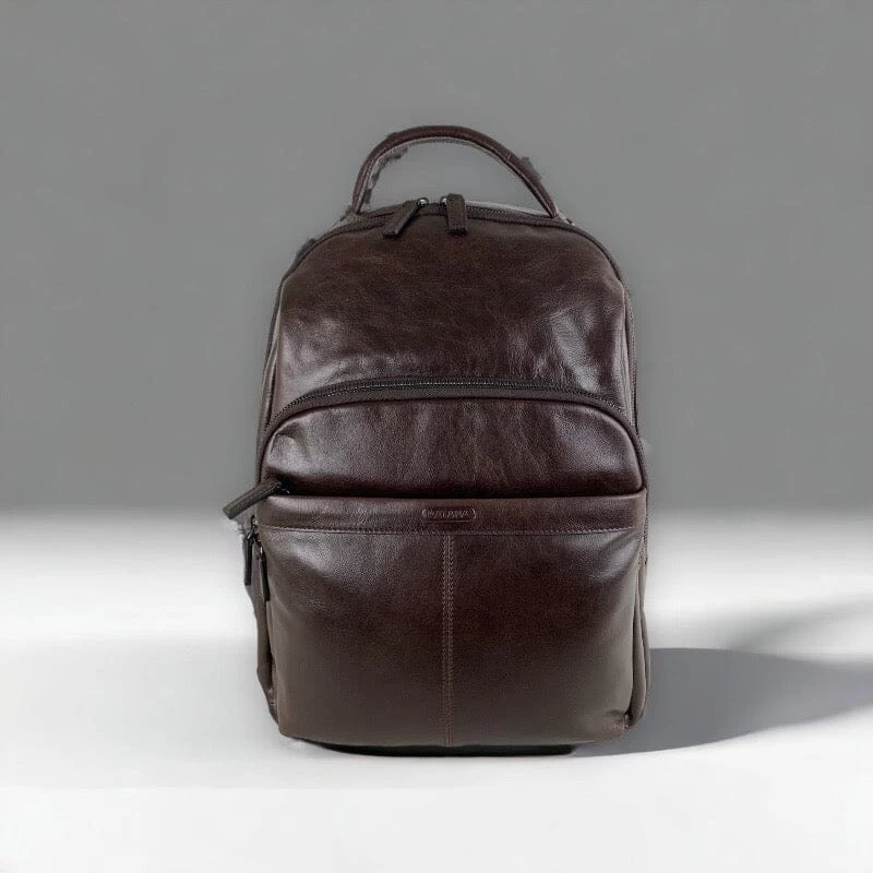 Compacte lederen laptop rugtas uit de Square collectie van het merk Katana. De tas is gemaakt van soepel en glad rundleer. De rugzak heeft een ruim hoofdvak waarin zich een 13,3″‘ laptopvak, een ritsvak en twee steekvakken bevinden. Er zitten twee voorvakken met ritssluiting aan de voorzijde. De rugzak heeft twee gevoerde leren schouderbanden en een gepolsterd achterpaneel voor optimaal draagcomfort. Aan de bovenkant bevindt zich een stevig leren handvat en aan de achterzijde bevindt zich een handig ritsvak.