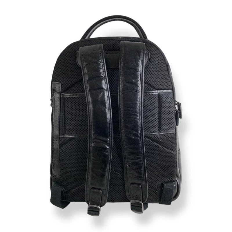 Luxe lederen laptop rugtas uit de Square collectie van het merk Katana. De tas is gemaakt van soepel en glad rundleer. De rugzak heeft een ruim hoofdvak, een laptoptvak voor een 15,6″ laptop en twee voorvakken. Al deze vakken zijn afsluitbaar met een ritssluiting. De binnenzijde beschikt over diverse opbergvakken en is geschikt voor het opbergen van A4 documenten. De rugzak heeft twee gevoerde leren schouderbanden en een gepolsterd achterpaneel voor optimaal draagcomfort. Tevens bevindt zich aan de achterzijde een Smart Sleeve om de rugtas te kunnen bevestigen op het trolleysysteem van een rolkoffer. Aan de bovenkant bevindt zich een stevig leren handvat.