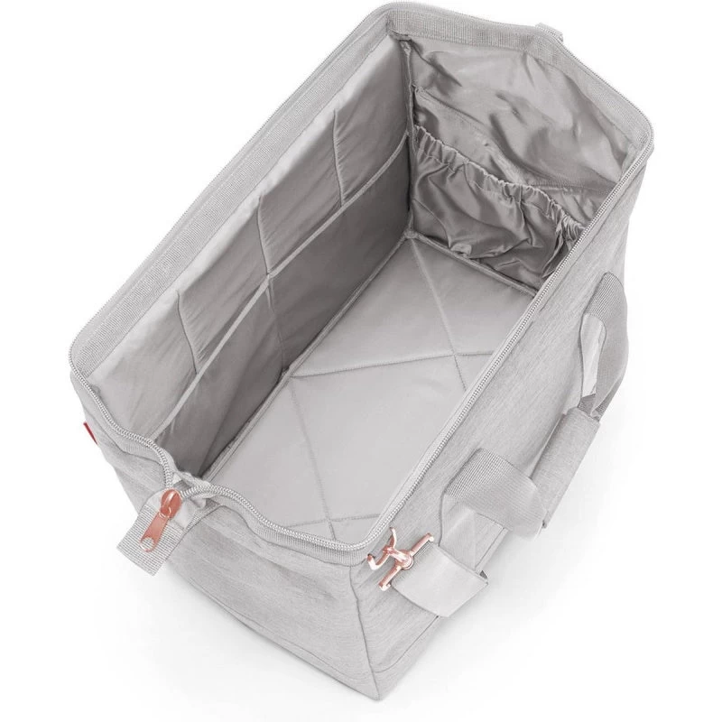De naam zegt het al: je kunt deze tas werkelijk overal voor gebruiken. Met zijn ruime, stevige ontwerp is de tas bijvoorbeeld ideaal voor een weekendje weg maar ook om je boodschappen in te doen. Kenmerkend aan de Reisenthel Allrounder zijn de lichtmetalen beugels die verwerkt zijn in de opening van de tas. Hierdoor zakt de tas niet in en kun je heel makkelijk bij je spullen en de diverse binnenvakjes.