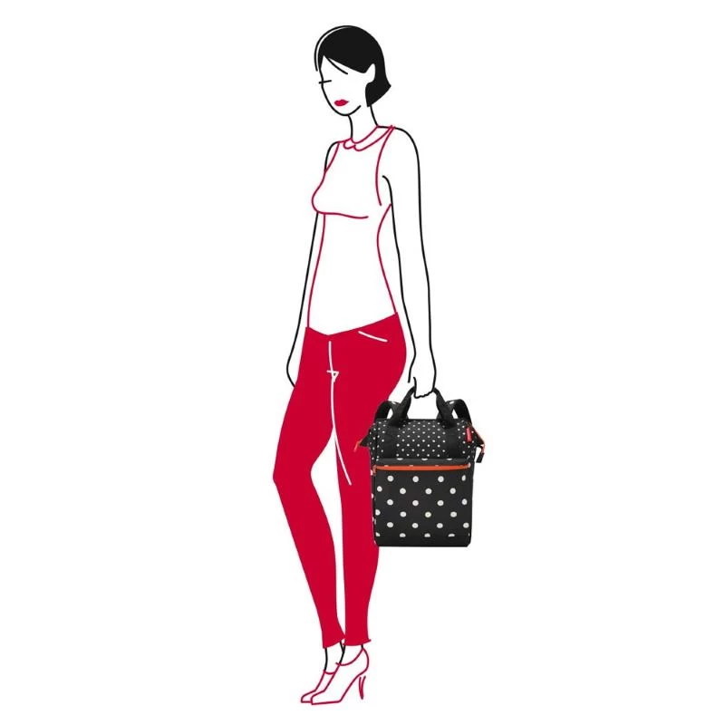 Het hoofdvak sluit door middel van een rits en een geïntegreerd metalen frame waardoor je je gemakkelijk iets in en uit de tas kunt halen. De binnenzijde heeft drie insteekvakken en een ritsvak terwijl zich aan de buitenzijde twee insteekvakken en een ritsvak bevinden. Middels de smart-sleeve aan de achterzijde kan de Allrounder R gemakkelijk op een trolleysysteem bevestigd worden.