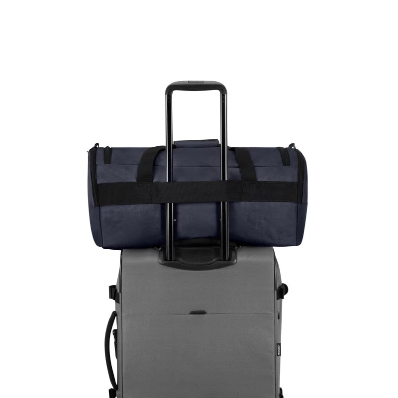 Deze ruime lichtgewicht reistas die ook uitstekend als sporttas gebruikt kan worden, sluit als bovenlader wat betekend dat het hoofdvak kan worden afgesloten met een U-vormige ritssluiting waardoor je gemakkelijk de tas kunt in- en uitpakken. Aan de voorzijde bevindt zich een ruim ritsvak. De sporttas heeft aan beide zijkanten een ritsvak Middels de twee handgrepen aan de bovenzijde kan de reistas in de hand worden vervoerd. Met behulp van de afneembare en in lengte verstelbare schouderband kan de tas crossover of op de schouder gedragen worden. Aan de achterzijde bevindt zich een smart sleeve waarmee de tas gemakkelijk aan het treksysteem van een trolley bevestigd kan worden. Thuis kan de tas worden platgemaakt en zo gemakkelijk worden opgeruimd.