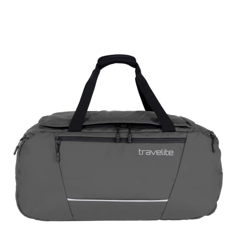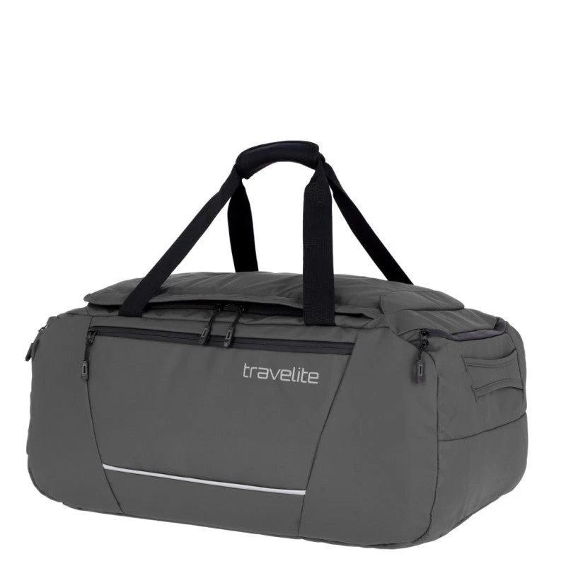 Reistas uit de Basics collectie van Travelite die ook als sporttas gebruikt kan worden. Deze ruime lichtgewicht tas sluit als bovenlader wat betekend dat het hoofdvak kan worden afgesloten met een U-vormige ritssluiting waardoor je gemakkelijk de tas kunt in- en uitpakken. Aan de voorzijde bevindt zich een ruim ritsvak evenals aan de binnenzijde. De sporttas heeft aan een zijkant een ritsvak en aan de andere zijkant een natvak met ritssluiting waar gebruikte en/of vuile textiel ingedaan kan worden. Middels de twee handgrepen aan de bovenzijde kan de reistas in de hand worden vervoerd. Aan beide zijkanten bevinden zich ook nog handgrepen. Met behulp van de afneembare en in lengte verstelbare schouderband kan de tas crossover of op de schouder gedragen worden. Thuis kan de tas worden platgemaakt en zo gemakkelijk worden opgeruimd.