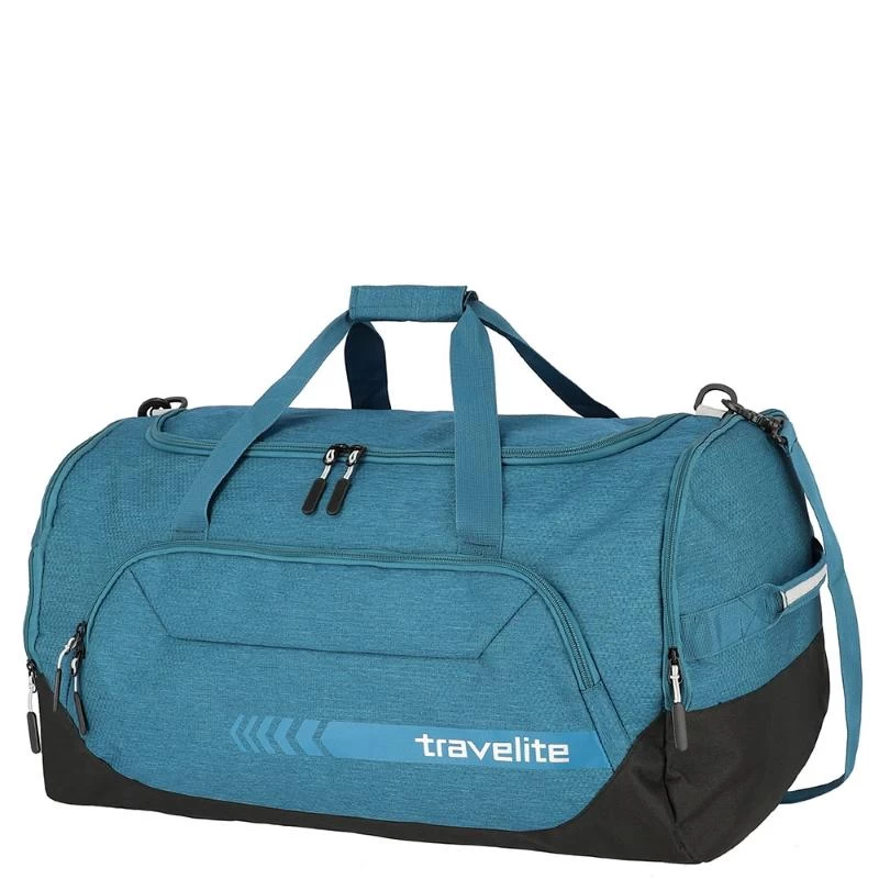 Reistas uit de Kick Off collectie van Travelite. Deze ruime lichtgewicht tas sluit als bovenlader wat betekend dat het hoofdvak kan worden afgesloten met een U-vormige ritssluiting waardoor je gemakkelijk de tas kunt in- en uitpakken. Aan de voorzijde bevindt zich een ruim ritsvak evenals aan de binnenzijde. De reistas heeft aan een zijkant een ritsvak en aan de andere zijkant een natvak met ritssluiting waar gebruikte en/of vuile textiel ingedaan kan worden. Middels de twee handgrepen aan de bovenzijde kan de reistas in de hand worden vervoerd. Aan beide zijkanten bevinden zich ook nog handgrepen. Met behulp van de afneembare en in lengte verstelbare schouderband kan de tas crossover of op de schouder gedragen worden. Thuis kan de tas worden platgemaakt en zo gemakkelijk worden opgeruimd.