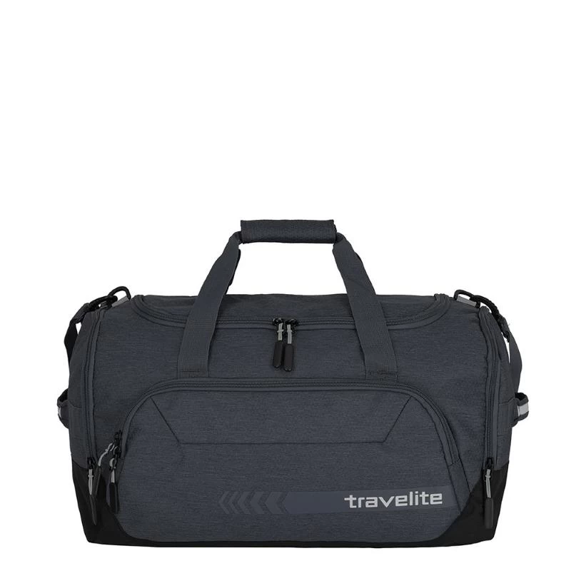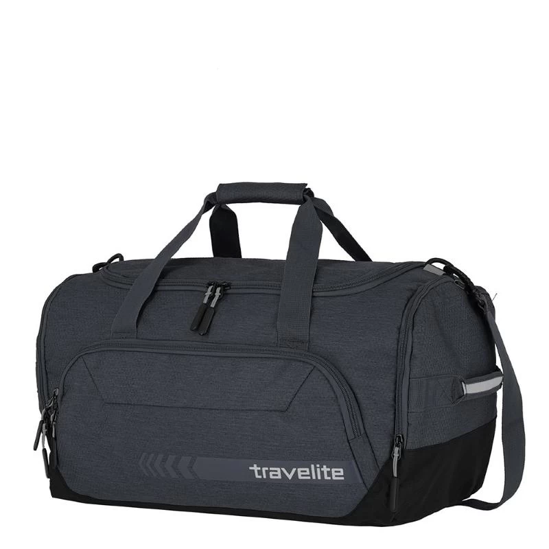 Reistas uit de Kick Off collectie van Travelite die ook als sporttas gebruikt kan worden. Deze ruime lichtgewicht tas sluit als bovenlader wat betekend dat het hoofdvak kan worden afgesloten met een U-vormige ritssluiting waardoor je gemakkelijk de tas kunt in- en uitpakken. Aan de voorzijde bevindt zich een ruim ritsvak evenals aan de binnenzijde. De sporttas heeft aan een zijkant een ritsvak en aan de andere zijkant een natvak met ritssluiting waar gebruikte en/of vuile textiel ingedaan kan worden. Middels de twee handgrepen aan de bovenzijde kan de reistas in de hand worden vervoerd. Aan beide zijkanten bevinden zich ook nog handgrepen. Met behulp van de afneembare en in lengte verstelbare schouderband kan de tas crossover of op de schouder gedragen worden. Thuis kan de tas worden platgemaakt en zo gemakkelijk worden opgeruimd.