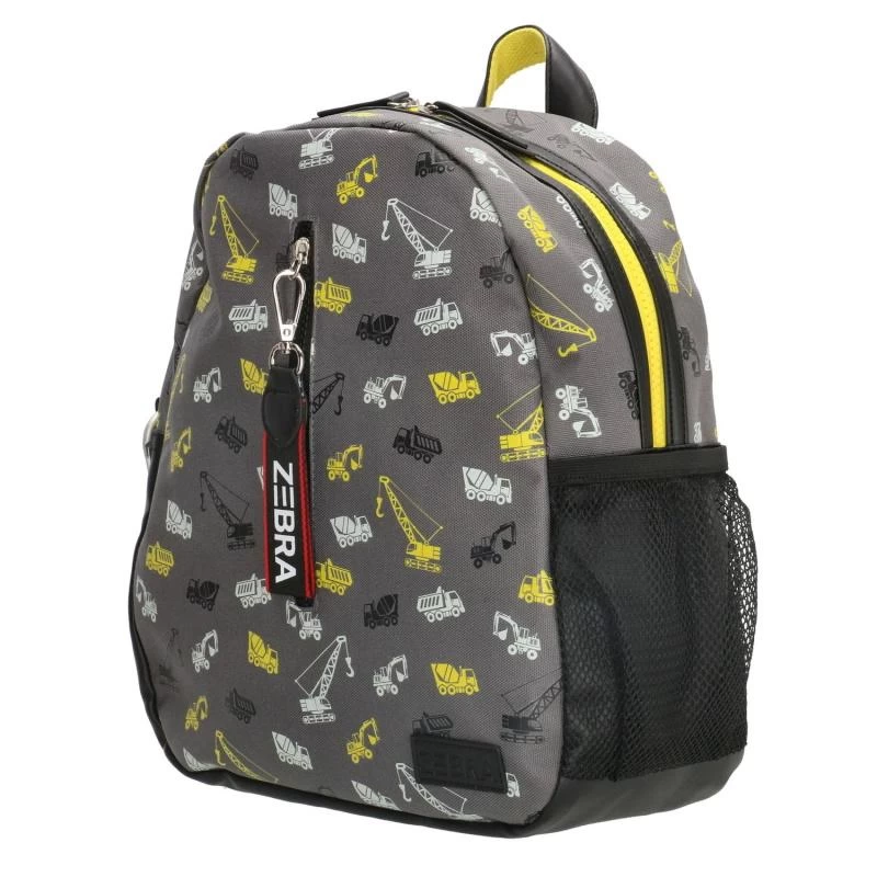 Deze gave (jongens) rugzak is bedrukt met kranen, bulldozers en vrachtwagens. De rugtas heeft een handvat aan de bovenzijde, verstelbare schouderbanden en sluit met een stevige ritssluiting. Ook is de tas voorzien van een opbergvak aan de voorzijde en 2 drinkbekervakken aan de binnenzijde. Aan de achterzijde zit een label vakje voor je naam of initialen zodat je rugzak op school niet verwisseld kan worden.