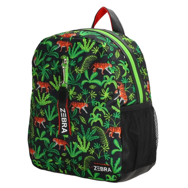 Deze gave (jongens) rugzak is bedrukt met tijgers in de jungle. De rugtas heeft een handvat aan de bovenzijde, verstelbare schouderbanden en sluit met een stevige ritssluiting. Ook is de tas voorzien van een opbergvak aan de voorzijde en 2 drinkbekervakken aan de binnenzijde. Aan de achterzijde zit een label vakje voor je naam of initialen zodat je rugzak op school niet verwisseld kan worden.