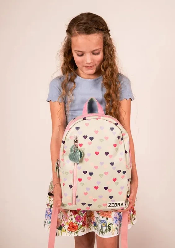 Heb jij een dochtertje die het liefst de hele dag door hartjes tekent? Dan is deze rugzak toch helemaal wat voor haar! De hartjesprint in combinatie met de lichte kleur zorgen voor een schattige look. Alle spullen zijn helemaal veilig in het ruime hoofdvak dat sluit door middel van een ritssluiting. Op de voorzijde heeft de tas nog een vakje dat sluit door middel van een ritssluiting. Zie jij jouw girl al lopen met deze leukerd?
